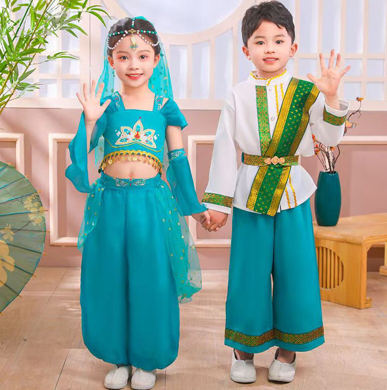 子供 中華アラビアン 民族風 コスプレ衣装 アラジン 敦煌 パフォーマンス ダンス衣装 改良 チャイナドレス 女の子 男の子 お姫様 王子様 ダンス衣装 コスプレ衣装