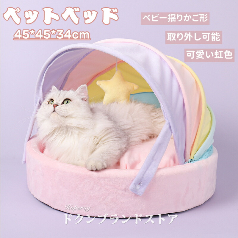 ペットベッド ミニハウス ドーム型 ふわふわ ネル ペット用 クッション 猫用 犬用 いぬ ねこ 虹色 揺りかご 屋根付き 取り外し可能 ソファー 小さな巣 春夏秋冬 猫犬兼用 快適 オールシーズン