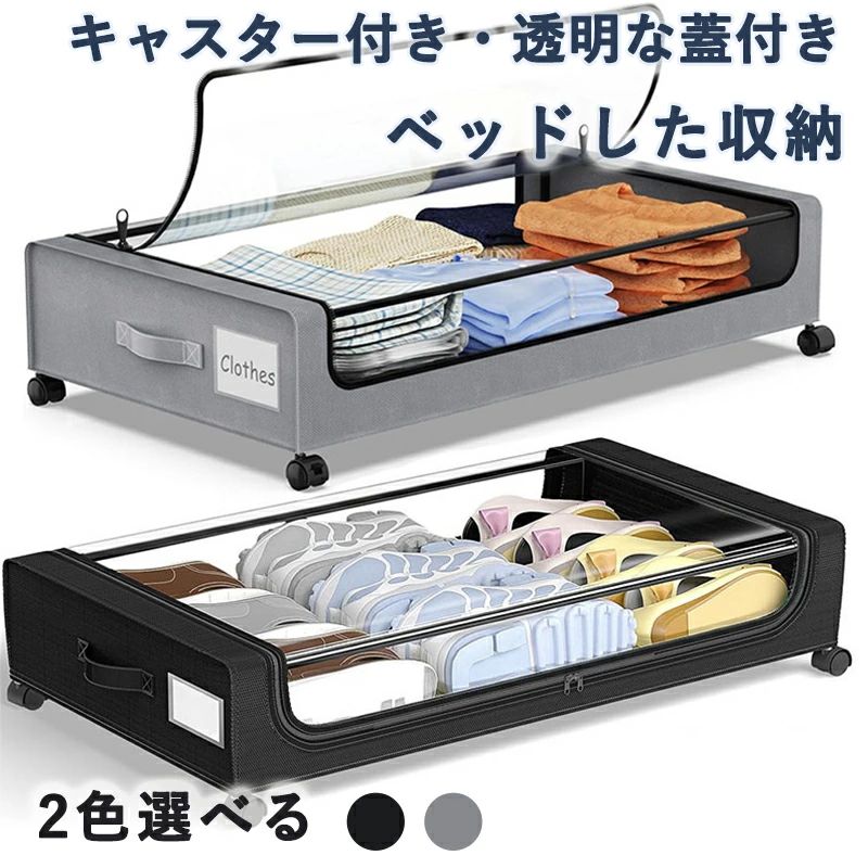 ベッドした収納 キャスター付き 衣類 着物 衣類をほこりや汚れから効果的に保護します 収納ケース 布団 透明な蓋が付いているので