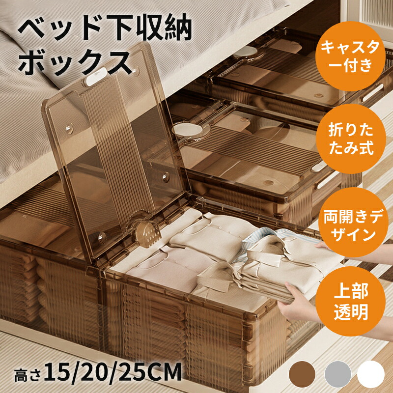 ベッド下 収納ボックス 40L 75L キャスター ソファ下 ベッド下ストレージ コンテナ 折畳み 収納ケース 大容量 押入れ収納 積み重ね ベッド下収納ボックス 透明収納ケー 組立簡単