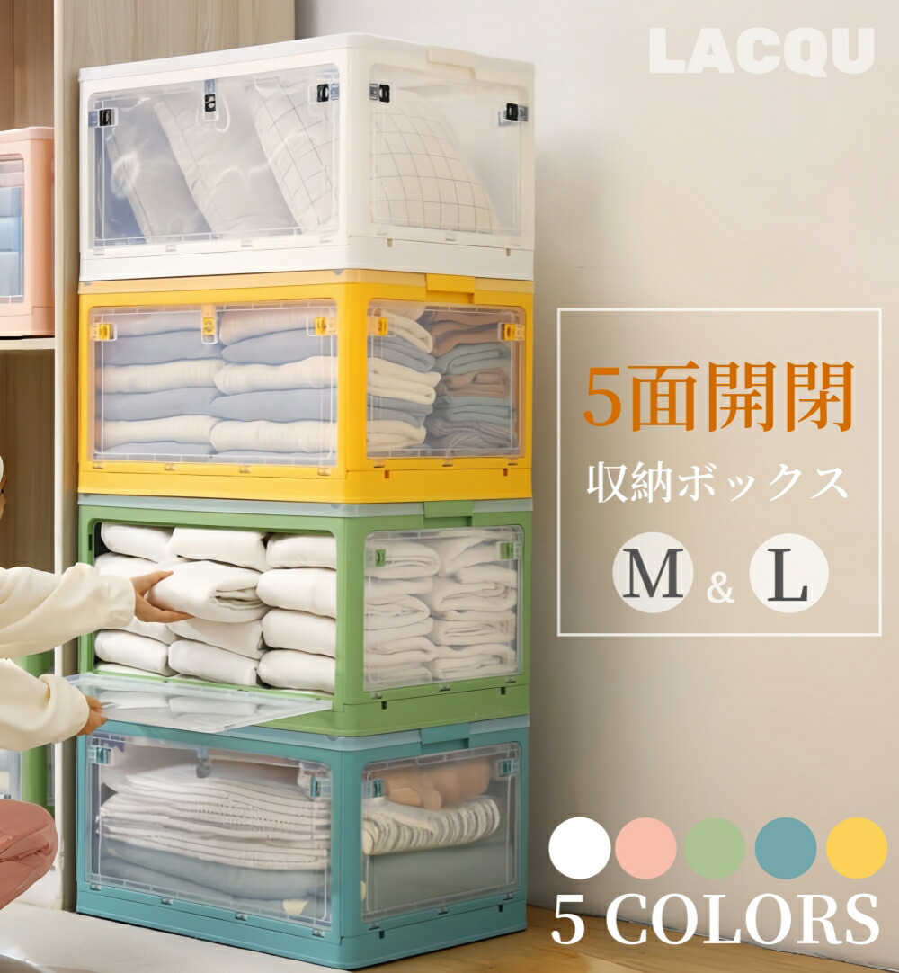 収納ボックス 折りたたみ 高品質 5面開閉 6サイズ コンテナ 1~5個組 蓋付 扉付 キャスター付 持ち手 収納 ボックス プラスチック クリアケース 折りコン 衣装ケース 布団 机 おもちゃ
