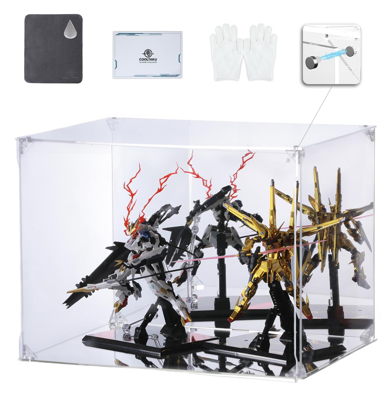 COOLTAKU フィギュアケース アクリル マグネット式 磁石付き 前扉 コレクションケース より堅固 組み立て式 アクリルケース ディスプレイケース 防汚れ クリーニング クロス付き フィギ 手袋