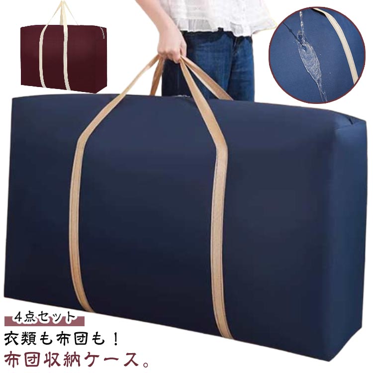 布団収納袋 布団収納ケース 4点セット 特大 収納バッグ 衣類 布団 3サイズ選べる 大容量 布団ケース 羽毛布団用 布団バッグ 押入れ収納 引っ越しバッグ 丈夫 持ち手付き キャリーバッグ 衣 防水