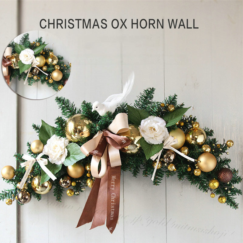 クリスマスリース 玄関 ホーン籐 外に飾れるリース オーナメント 屋外 アートフラワー クリスマス リース インスタ映え クリスマスツリー おしゃれ 店舗 壁掛け ウェルカムフラワー 手作り ショップ