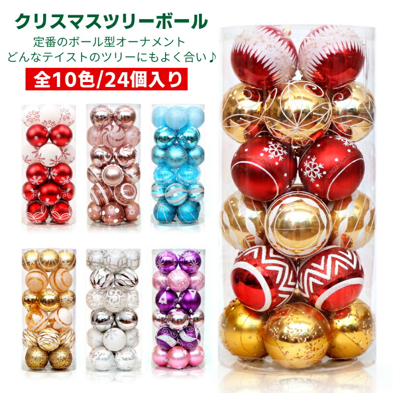 クリスマス オーナメント クリスマスツリー 飾り オーナメントセット ボール セット 24個入り 装飾 北欧 おしゃれ クリスマスプレゼント キラキラ 光沢感 インテリア