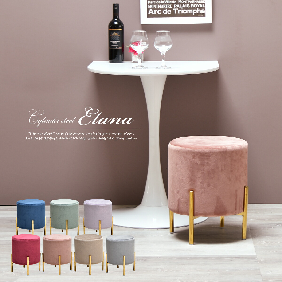 ベロアの円柱型スツール (エタナシリンダー)送料無料 丸スツール 玄関 ベッド サイドテーブル ダイニング ガーリー フェミニン エレガント チ