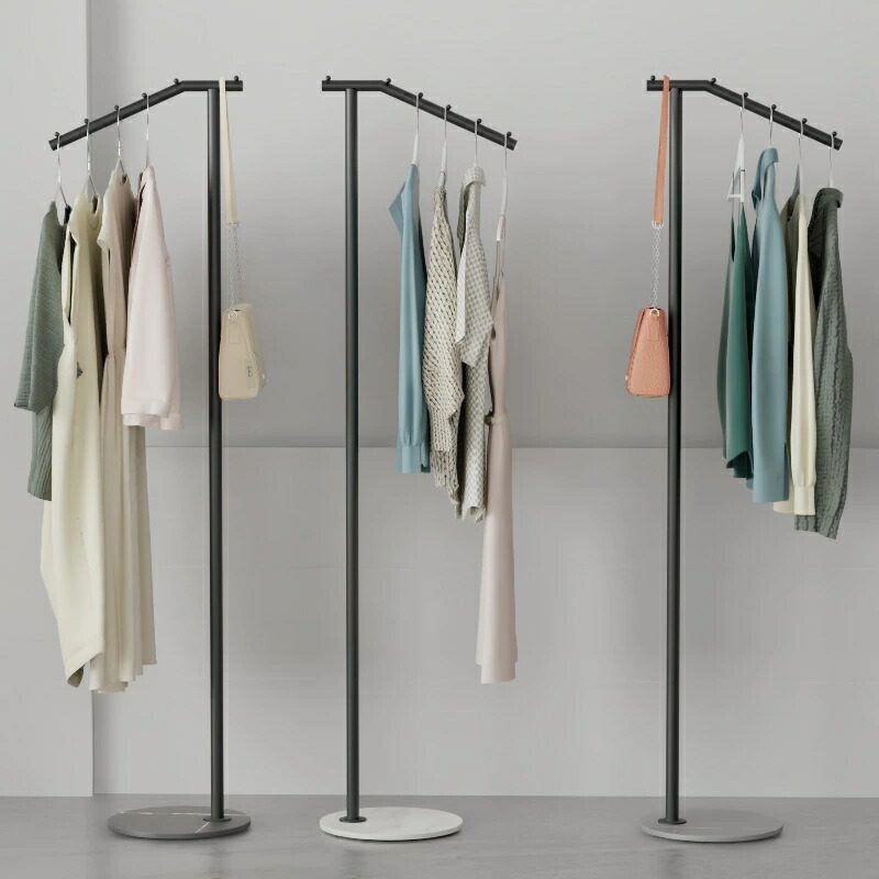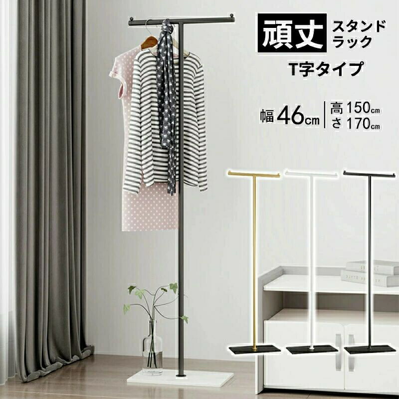 ハンガーラック 頑丈 組立式 スリム T字 ポールハンガー ポールハンガーラック コンパクト スタンドラック 簡単組立 省スペース スチール 大理石 衣類掛け ディスプレイラック 業務用 コート掛け