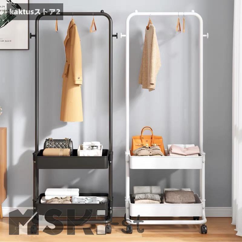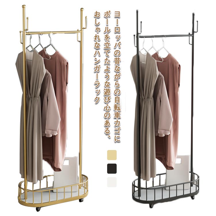 ハンガーラック おしゃれ 棚付き キャスター付き トローリーハンガー バスケット コートハンガー バスケット付き カゴ 子供 玄関 多機能 大容量 収納ラック 収納