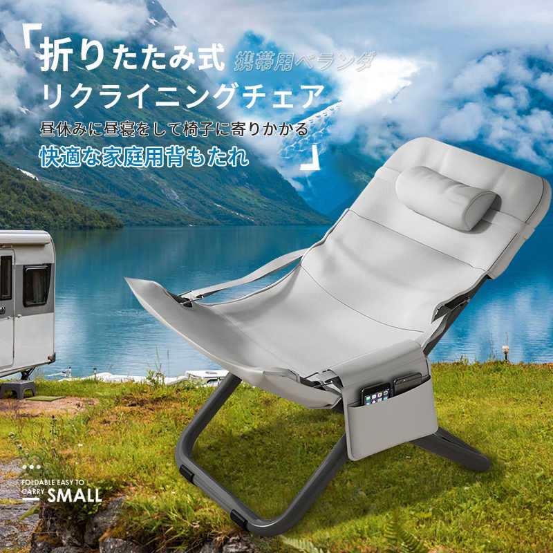 3段階調整 レイザーチェア 折りたたみチェア 枕付き 収納袋付き 室外 室内 アウトドア ベランダ 昼休みに昼寝をして椅子に寄りかかる 快適 背もたれ 携帯用 ゆったりした怠け者用ソファ 家庭用