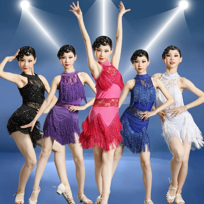 女の子 ダンス衣装 ダンスドレス キッズ 子供ドレス フリンジ ラテン衣装 社交ダンス ワンピース 子ども モダンダンス スパンコール レース ステージ衣装 練習着 ダンスウェア 演出 イベント服 学