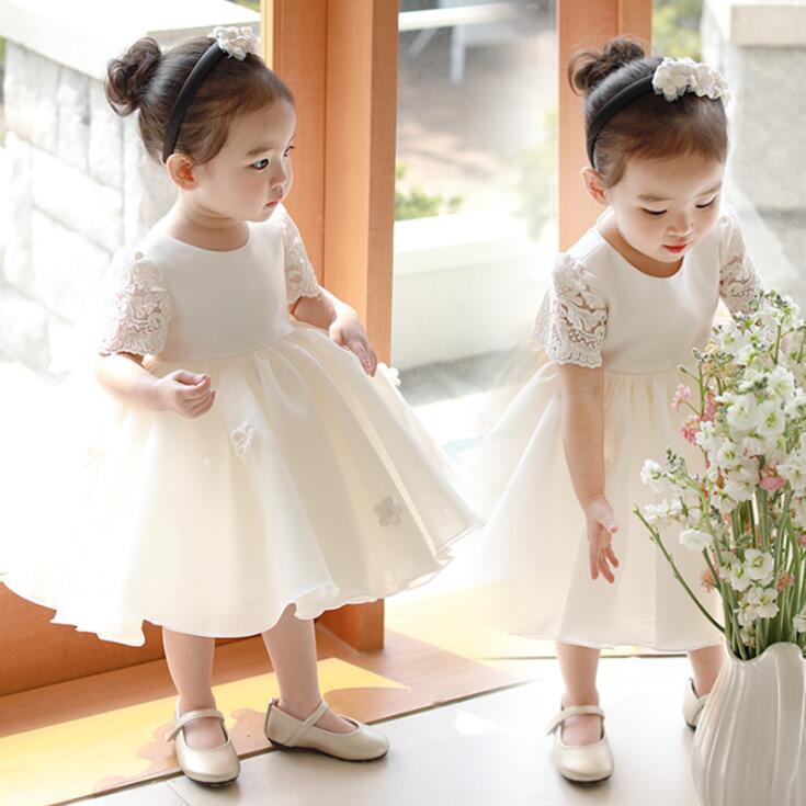 キッズドレス 女の子レースドレス 半袖 子供フォーマルドレス キッズ 子供 フレアワンピース 無地 花飾り 団体服 合唱団 舞台衣装 発表会 演奏会 音楽会 誕生日会 結婚式 ウェディング イベント