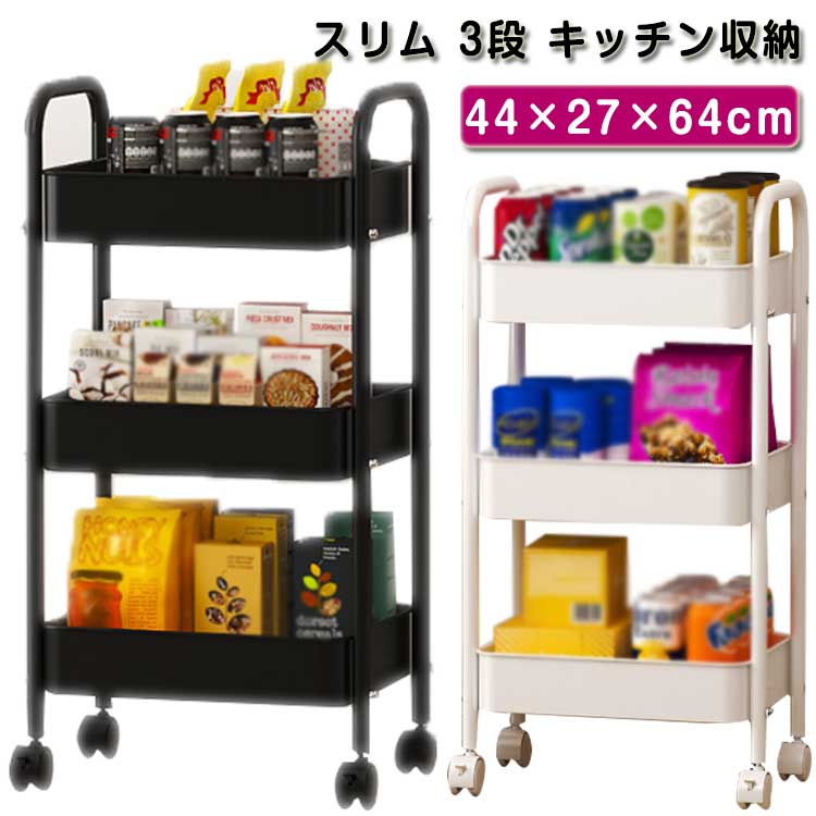 キッチンワゴン スリム3段 キャスター付き ワゴン スリム キッチン収納棚 ベビーワゴン おしゃれ おしゃれ ハンガーラック 収納 ハンドル