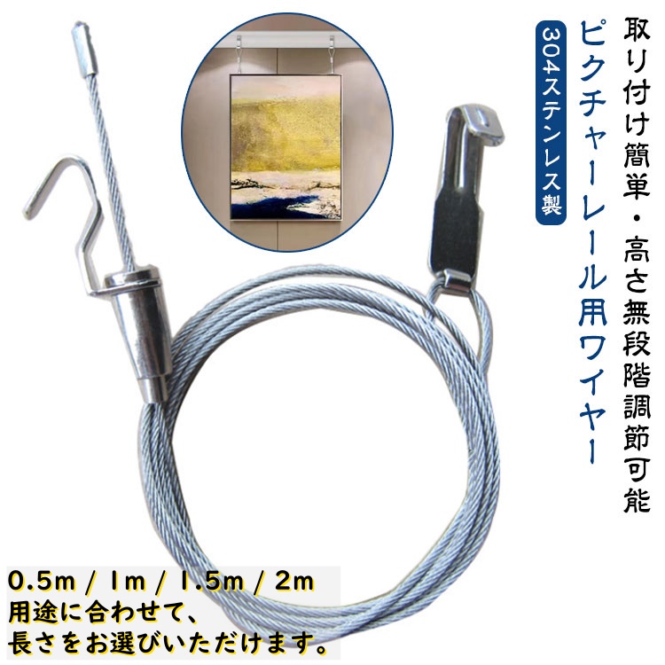 ピクチャーレール 壁掛け 絵画 写真 ポスター 吊り下げ ワイヤー 2m 10本セット フック付き 304ステンレス製 無段階調節 絵画 写真 ポスター 吊り下げ 取り付け簡単 耐荷重25kg