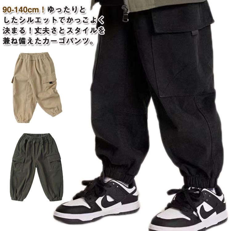 子供服 カーゴパンツ 長ズボン ロングパンツ キッズ ジュニア 子供 男の子 女の子 ボーイズ ガールズ ボトムス ウエストゴム 裾ゴム