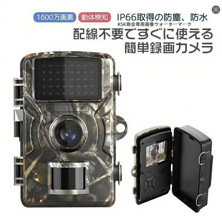 防犯カメラ トレイルカメラ 屋外 ワイヤレス 電池式 1600万画素 モニター付き 工事不要 電源不要 小型 屋外カメラ 家庭用 暗視 防水防塵 人感センサー 監視
