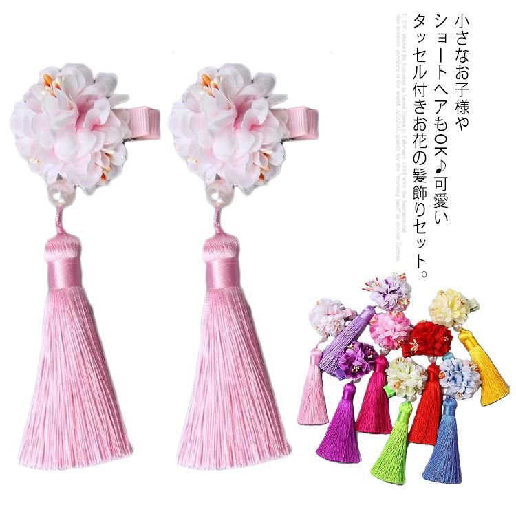 七五三 髪飾り キッズ 花 ヘアアクセ ダリア タッセル クリップ留め 浴衣 結婚式 卒園式 卒業式 夏祭り お宮参り 三歳 五歳 お正月