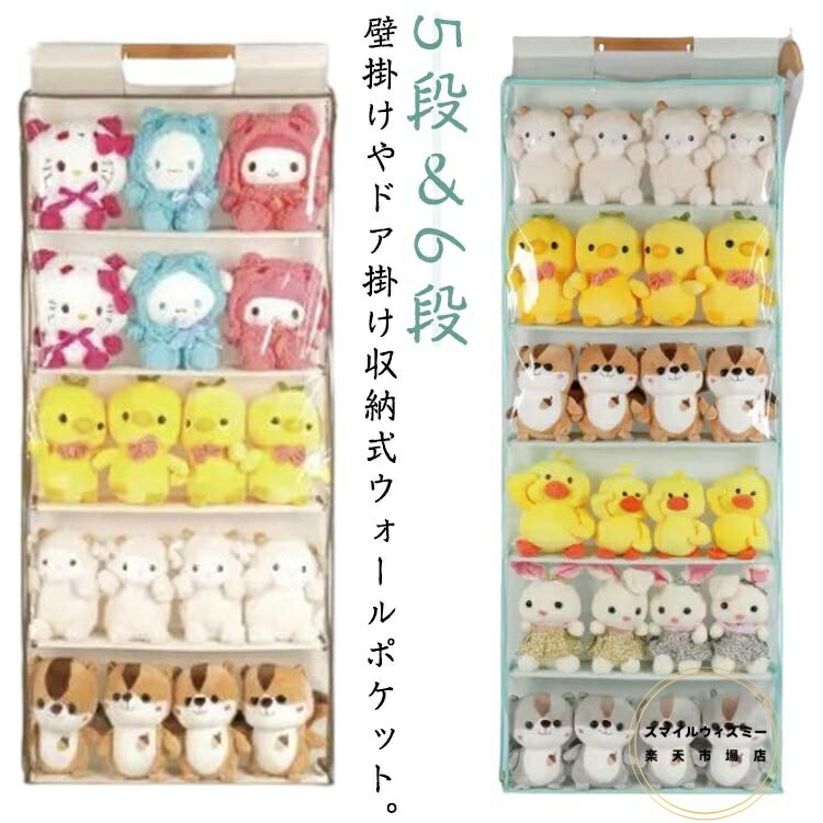 ぬいぐるみウォールポケット ディスプレイ コレクションケース 5段 6段収納ケース 収納ボックス コレクション ぬいぐるみ 収納 見せる収納 ドア掛け収納式ポケット ウォールポケット 吊り下げ 小物