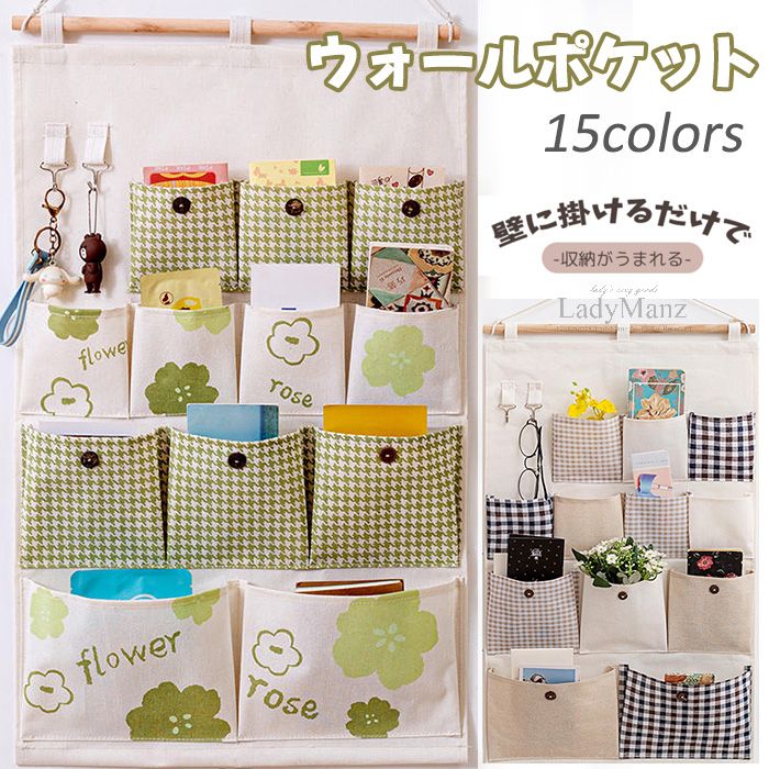 12ポケット ウォールポケット 壁掛け袋 収納 小物入れ 可愛い 便利 便利グッズ 壁収納 吊り下げ 壁掛け 綿麻 ポーチドアハンガー スペース活用 3段 壁掛けポケット 吊下げタイプ 布 コンパクト