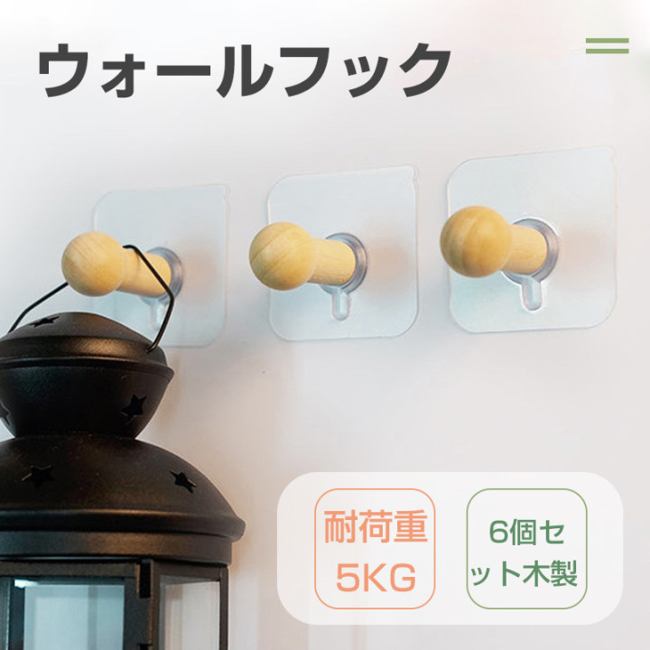 ウォールフック 木製 粘着 無痕フック 壁掛けハンガー