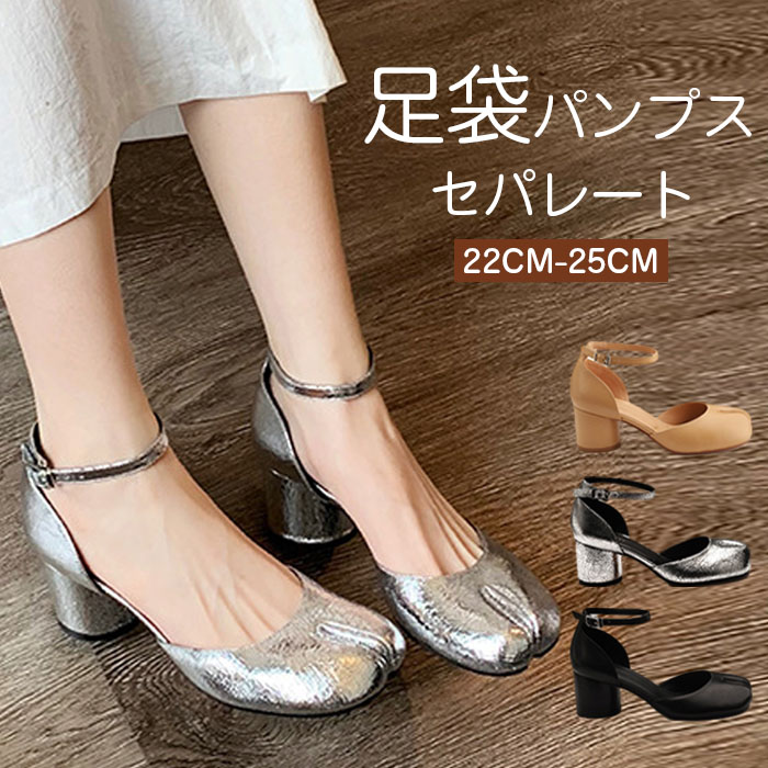 足袋パンプス 足袋シューズ レディース セパレート ローファー 5cmヒール チャンキーヒール ハイヒール 光沢感 靴 美脚 先割れシューズ タビパンプス たび ストラップ 個性 タビ