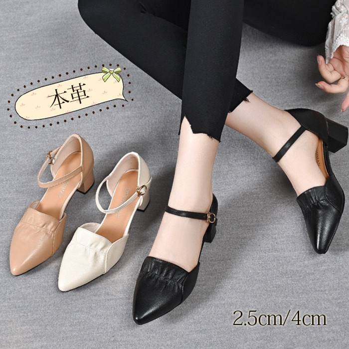 パンプス 本革 ストラップ ローヒール ミドルヒール 牛革 痛くない 幅広 レディース 軽量 夏 春秋 通勤 結婚式 太ヒール ポインテッドトゥ リクルート 二次会 パーティー フォーマル 冠婚葬祭