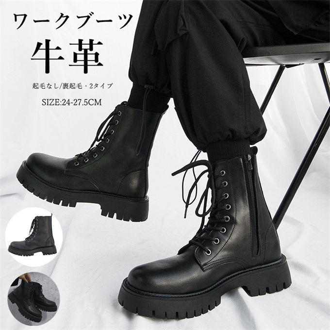 ワークブーツ メンズ ショートブーツ 牛革 本革 レースアップブーツ サイドジップ 本革靴 アウトドア マウンテンブーツ 春夏秋冬 厚底 ブーツ シューズ メンズファッション フォー マーティンブーツ