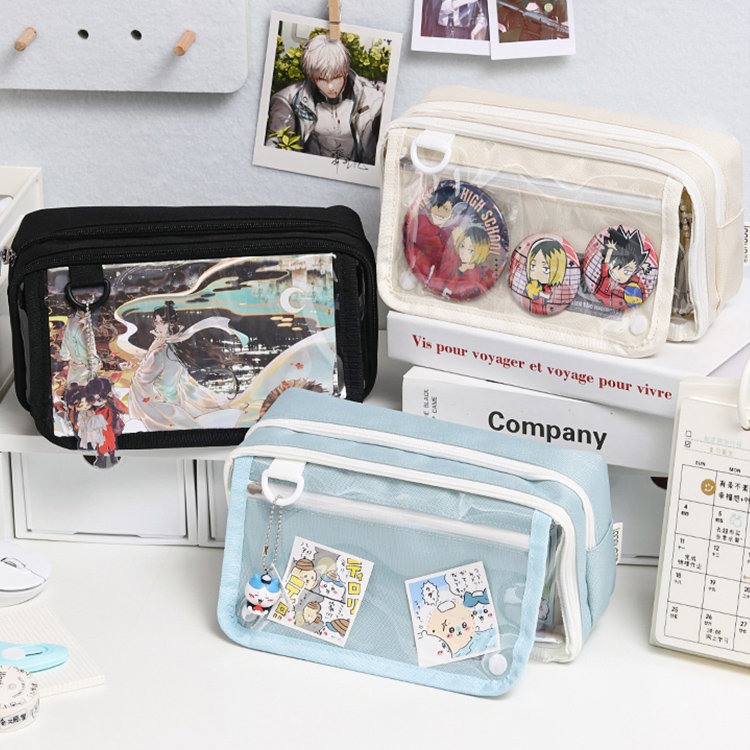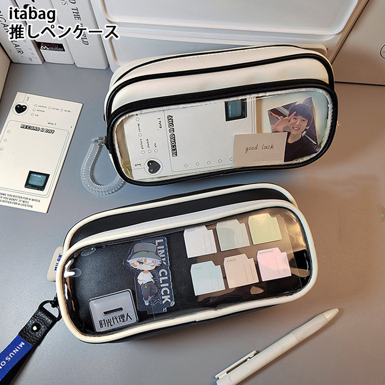 ペンケース 筆箱 推し筆箱 推し 痛ペンケース 痛バ 痛バッグ 缶バッジ クリア 透明窓 大容量 多機能 子供 小学生 中学生 高校生 大学生 学生 大人 スクール 女の子 男の子 缶バッチおしゃれ