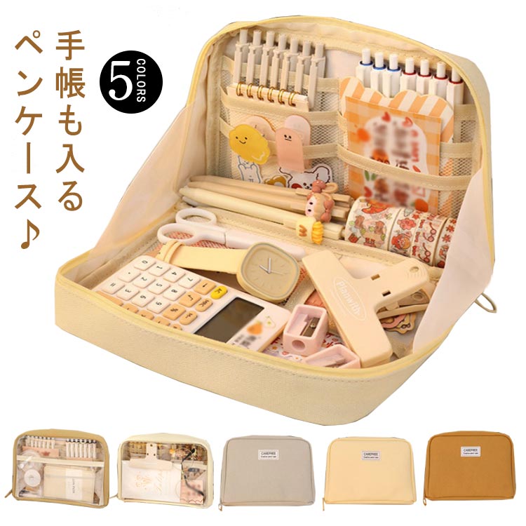 手帳も電卓も文房具もひとまとめに ガバっと開いて見やすい 立てられる 筆箱 ふでばこ 推し活 ポーチ 高校生 社会人 大学生 ペンケース