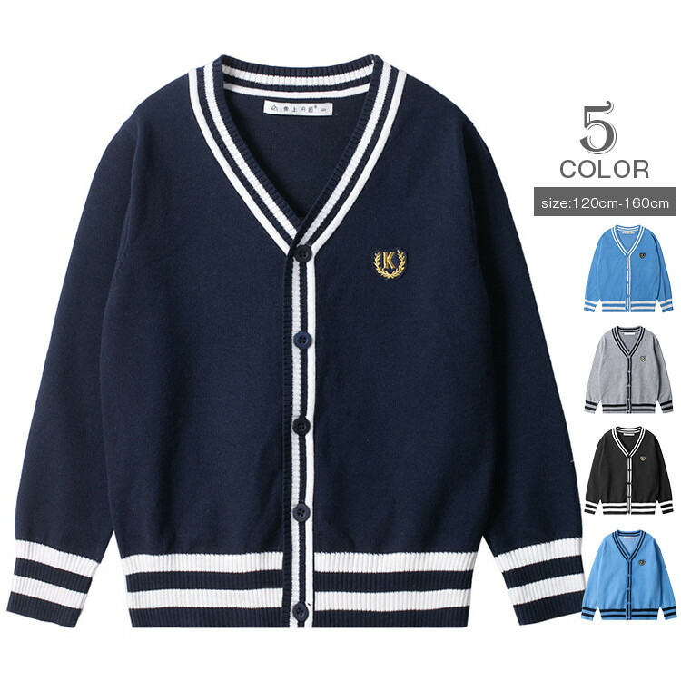 スクールカーディガン キッズ 子供 小学生 ユニセックス トップス カーディガン 春 秋 冬 制服 セーター ニット スクールニット 学生 Vネック 配色 羽織り レイヤード 長袖 長そで ス 重ね着