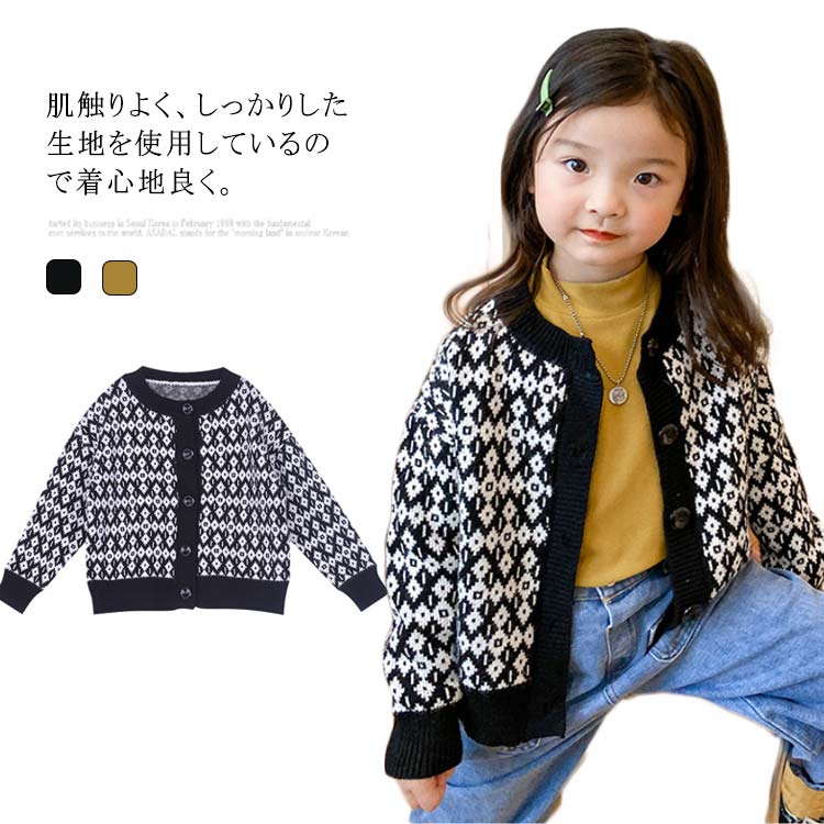 子供服 ベビー服 カーディガン 女の子 男の子 秋冬 ニット セーター 長袖 チェック柄 ガールズ アウター シンプル キッズ 暖かい トップス 厚手 カジュアル 羽織り 可愛い 防寒保温