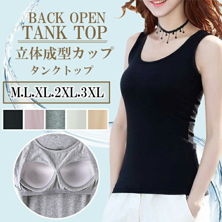 立体成型カップタンクトップ ブラトップ パッド付き カップ付き インナー キャミソール ノースリーブ ストレッチ 重ね着 レディース ブラック ホワイト グレー ベージュ ダンス 大きいサイズ ピンク