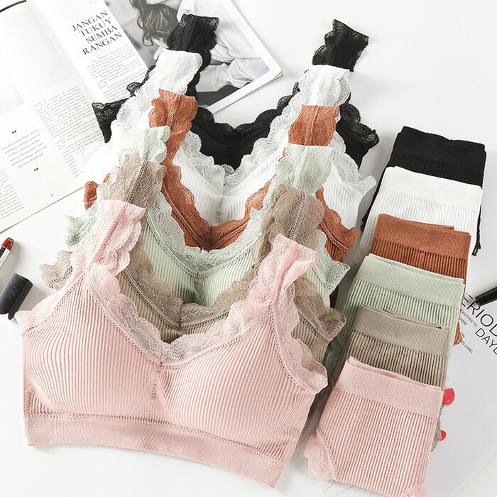 ブラトップ レディース 秋 冬 秋冬 黒 白 インナー 下着 ブラジャー ノンワイヤーブラ レース カップ付き ブラ ブラック ホワイト ノンワイヤー キャミソール ナイトブラ ヨガ ジ フィットネス