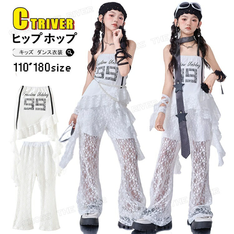k-pop 衣装 白 レースパンツ キッズダンス衣装 女の子 セットアップ ロング ダンスパンツ トップス タンクトップ ガールズ 韓国 ダンス ジャズ チアダンス ジ ヒップホップ