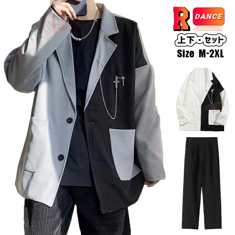 ダンス衣装 スーツ 白 黒 ダンススーツ セットアップ メンズ k-pop 衣装 大人 パンツ ブラック ホワイト オーバーサイズ ヒップホップ パ ジャケット