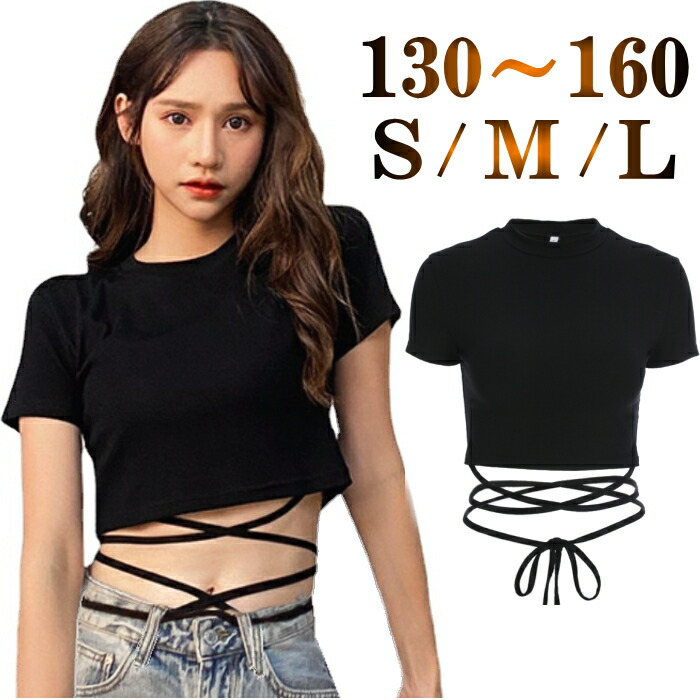 ショート丈 Tシャツトップス 半袖 へそ出し ヨガウェア スポーツウェア 黒 ダンス 衣装 着痩せ 韓国 おしゃれ 編み上げ スケーター ステージ衣装 ストリート 原宿 セクシー カ ヒップホップ
