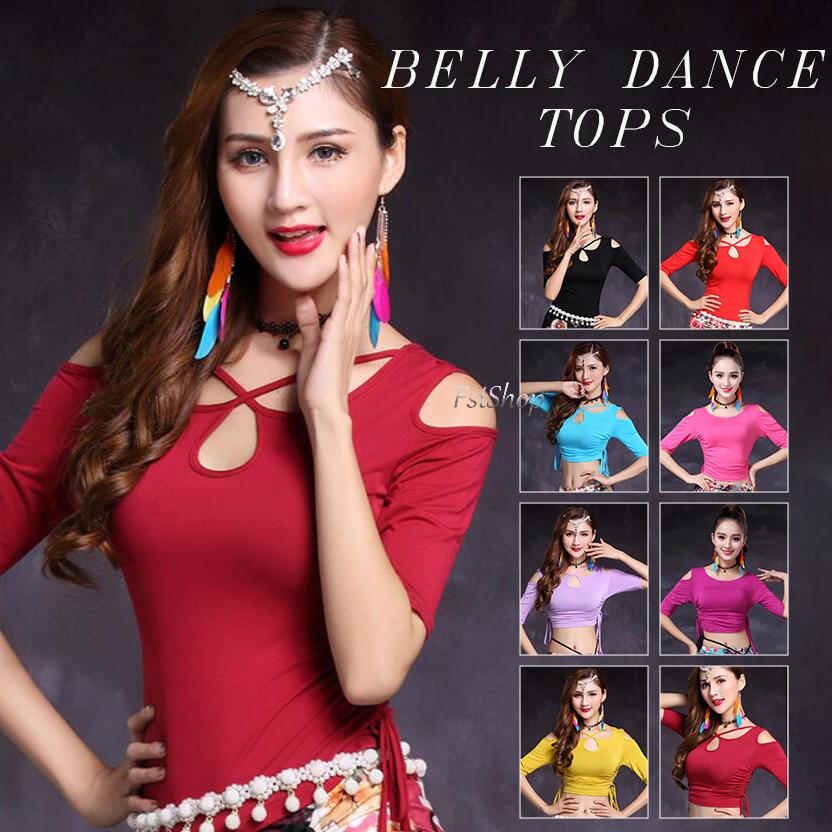 ベリーダンス衣装 トップス ダンス衣装 春夏秋 社交ダンス 演出衣装レッスン着ベリーダンス 練習着トップス ステージ衣装パープル5分袖ブルー ブラック イエロー パープル