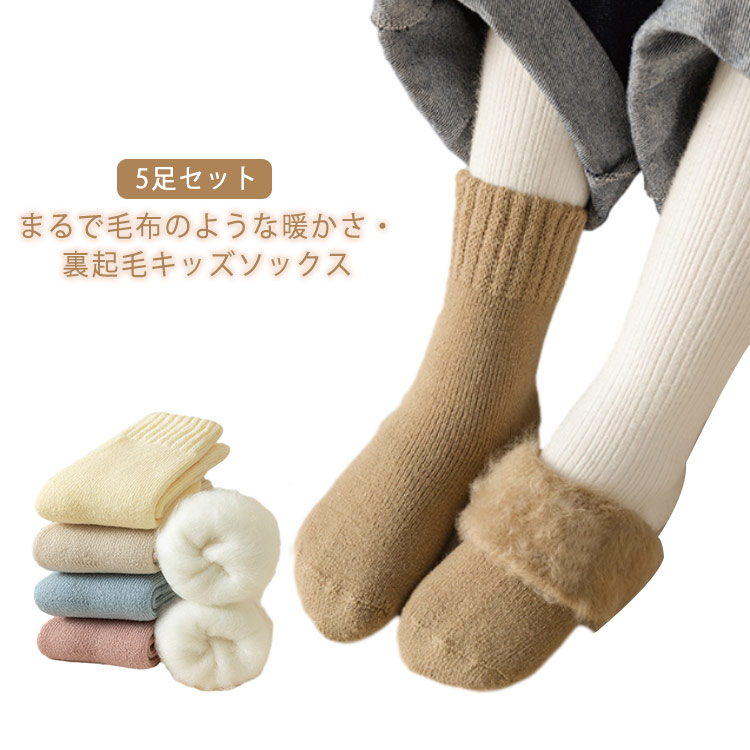 子供 靴下 5足セット 裏起毛 ソックス 男の子 女の子 キッズ もこもこ 暖かい あったか靴下 厚手 冬 防寒 保温 子供ソックス 冷え対策 クルー丈 くつ下 子ども 無地 シンプル 通 子供用靴下