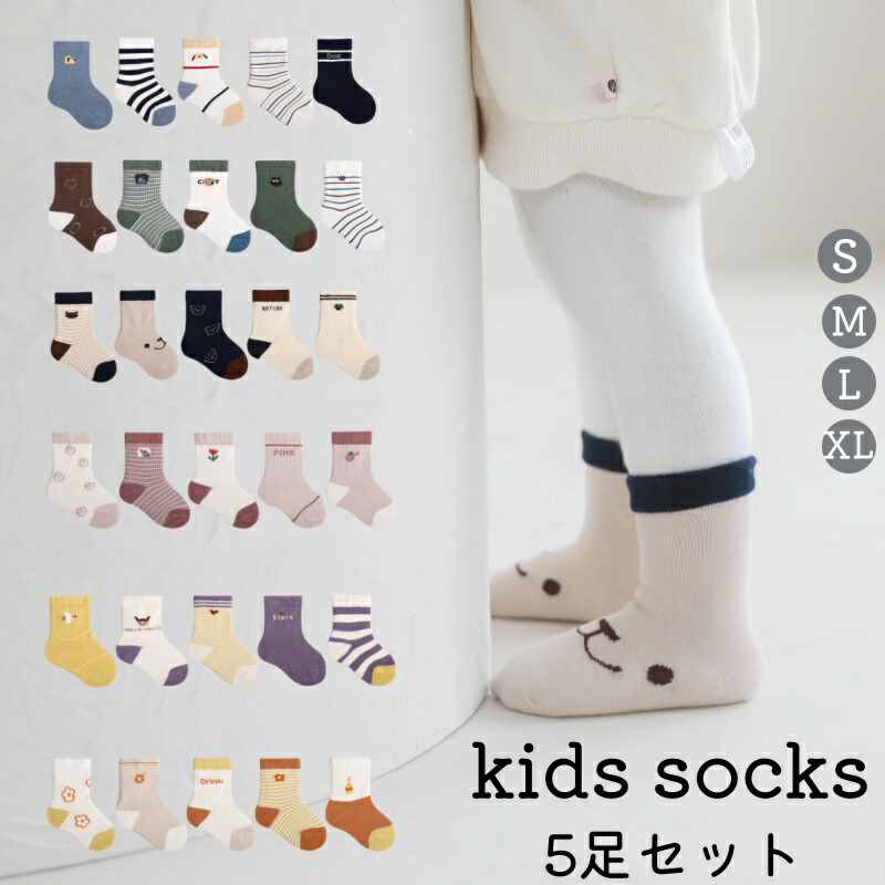 子供 靴下 キッズ用 赤ちゃん ベビー ソックス 入園 入学準備 5点セット 10 12 13 14 15 16 コットン くま いぬ 星 いちご 花 6ヶ月 1歳 2歳 3歳 4歳 5歳 6歳 7歳 8歳 かわいい