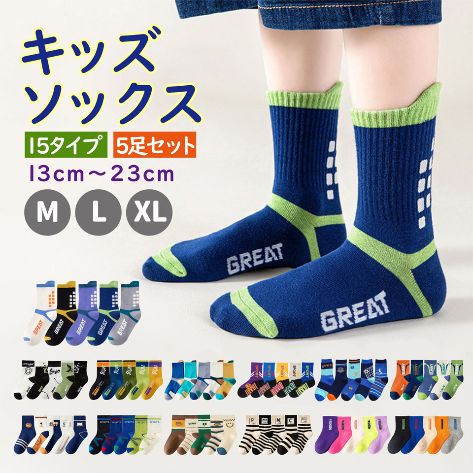 スポーツデザイン 子ども 靴下 5足セット 男の子 女の子 13-15 16-19 19-23 通園 園児 保育園 ベビー キッズ おしゃれ 浪漫樹