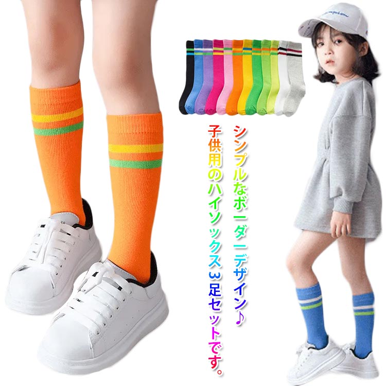 女の子 3足セット 男の子 ライン ロング丈 ボーダータイツ ハイソックス ソックス ジュニア キッズ 伸縮性 ボーダーソックス 通園 ベビー 春秋 子供用 子ども 綿 コットン