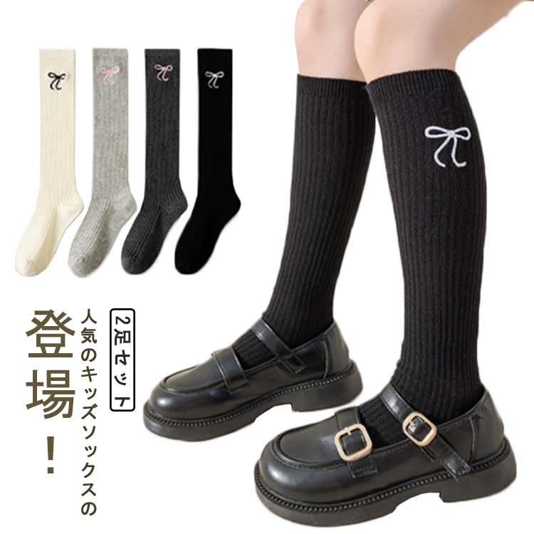 2足セット 子供用ハイソックス キッズハイソックス 女の子 靴下 膝下 韓国風 キッズ 綿 ソックス ガールズ ロングソックス かわいい 伸縮性 通気 キッズソックス 通園 通学 卒業式 フォーマル