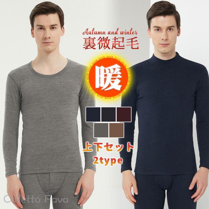 裏微起毛 上下セット アンダーウエア メンズ 2TYPE 丸首 タートルネック 防寒 暖かい ヒートテック インナー あったか 冷え 敬老の日 冬用