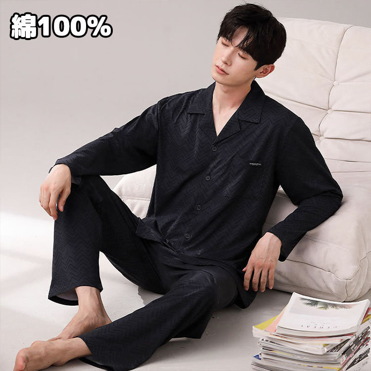大好評 パジャマ 寝巻き 綿 メンズ 長袖 春 夏 秋 上着前開き 薄手の長袖 長ズボン 入院 ルームウェア 明日まで値下げ ナイトウェア