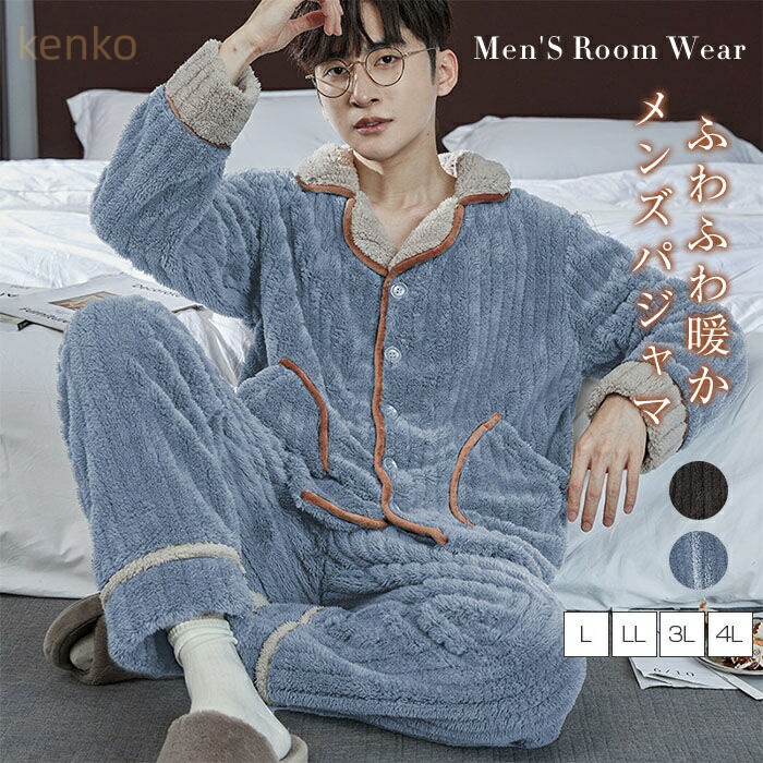 入院 大きいサイズ ゆったり 寝巻き 部屋着 メンズパジャマ もこもこ ふわふわ 2点セット パジャマメンズ 長袖 暖かい