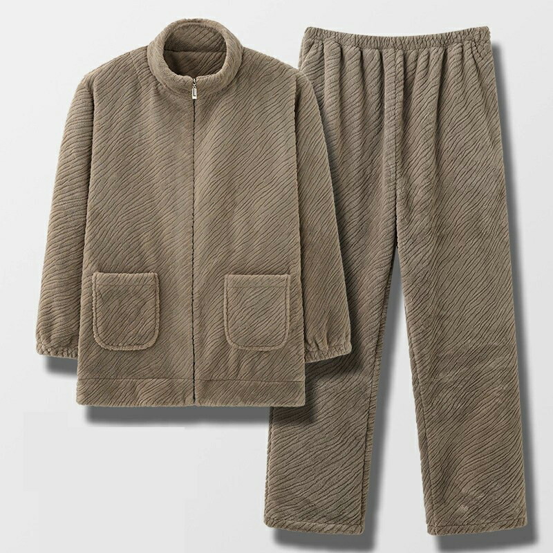上下2点セット あったかい パジャマ メンズ 秋冬 厚手 ルームウエア 無地 起毛