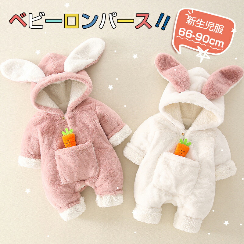 ロンパース ベビー ウサギさん 着ぐるみ 裏ボア フード付き ベビー服 新生児服 あったか カバーオール 男の子 女の子 ロンパース ボア もこもこ 寝袋 秋冬 パジャマ