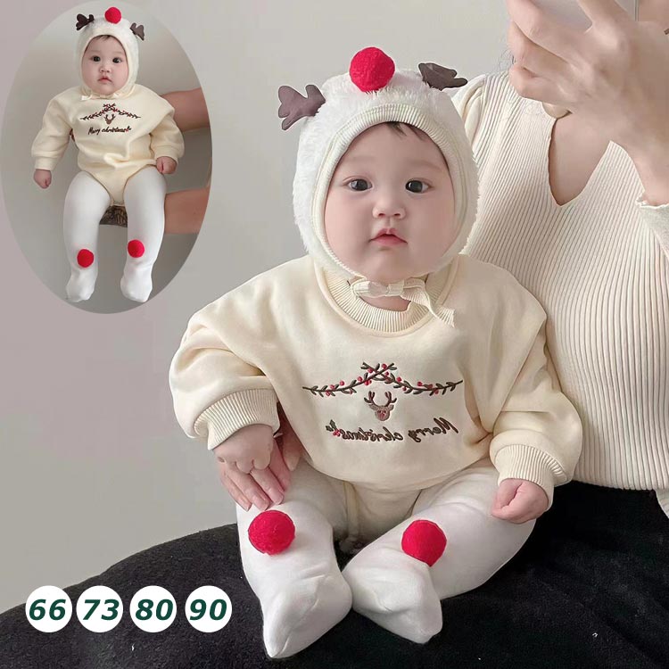 ベビー クリスマス ロンパース 裏起毛 帽子 長袖 ベビー服 赤ちゃん カバーオール キッズ コスチューム 新生児 出産祝い 写真記念撮影 サンタ風 サンタさん サンタ お祝い 誕生記念 プレゼ 衣装