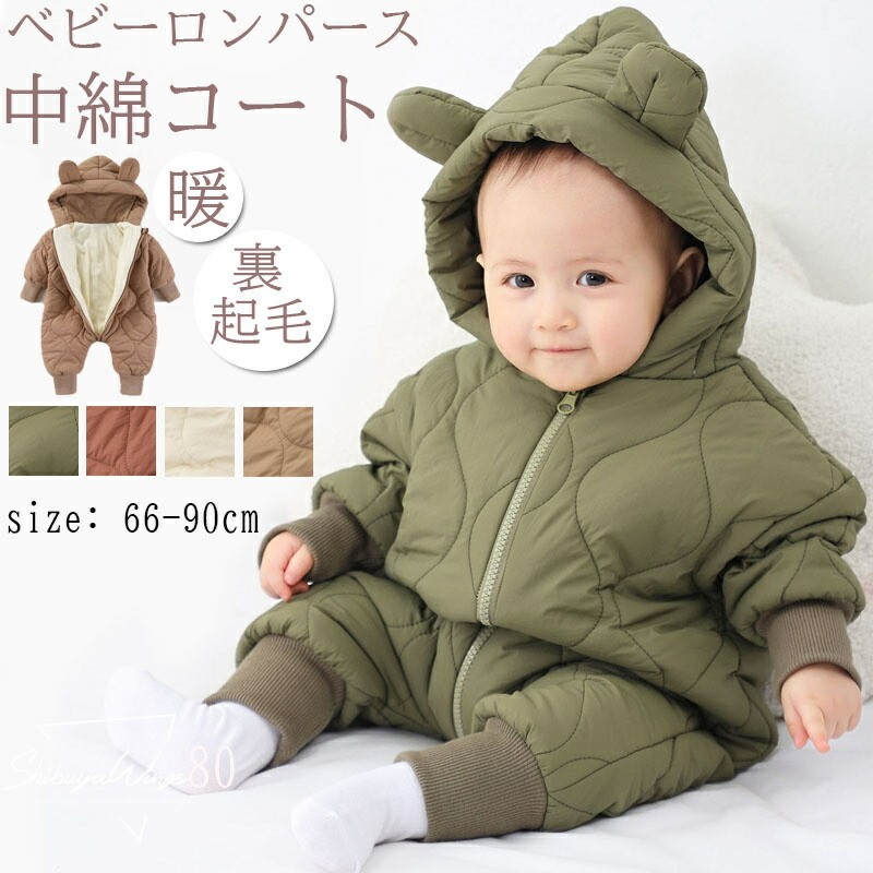 ロンパース 長袖 ベビー服 女の子 男の子 中綿コート 防寒 暖かい カバーオール キッズ 綿 コットン 子供服 新生児 赤ちゃん おしゃれ 可愛い 66 73 80 100cm 子ども服 前開 90