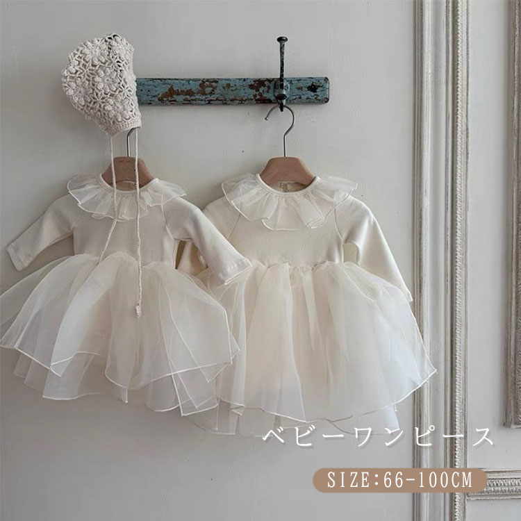 ベビー ワンピース ロンパース 女の子 ドレス 長袖 チュール ベビー服 セレモニードレス 赤ちゃん かわいい 可愛い おしゃれ お宮参り フォーマル 結婚式 七五三 子供 キッズ 可 記念日