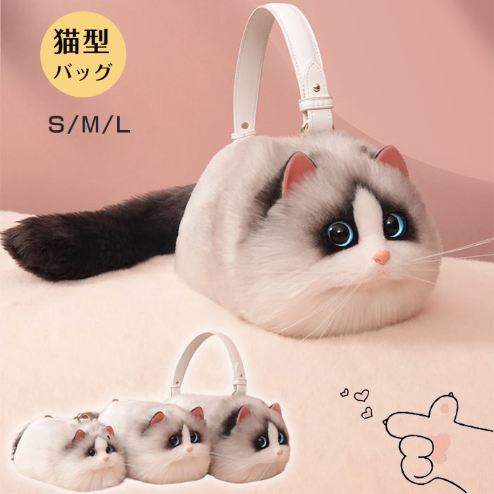 猫ちゃん型バッグ ショルダーバッグ 猫型 バッグ ハンドバッグ レディース 猫 鞄 カバン 雑貨 ぬいぐるみ ファー リアル ふわふわ 猫好き ミニバッグ 可愛い ポーチ 高級感 サブバッグ